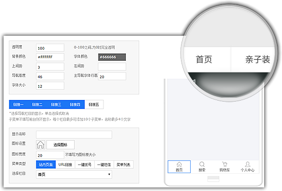 手机网站自定义底部导航链接,方便快捷