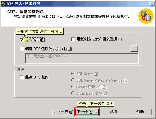 7. 设定调度方式,一般选“立即运行”就可以,然后点“下一步”继续