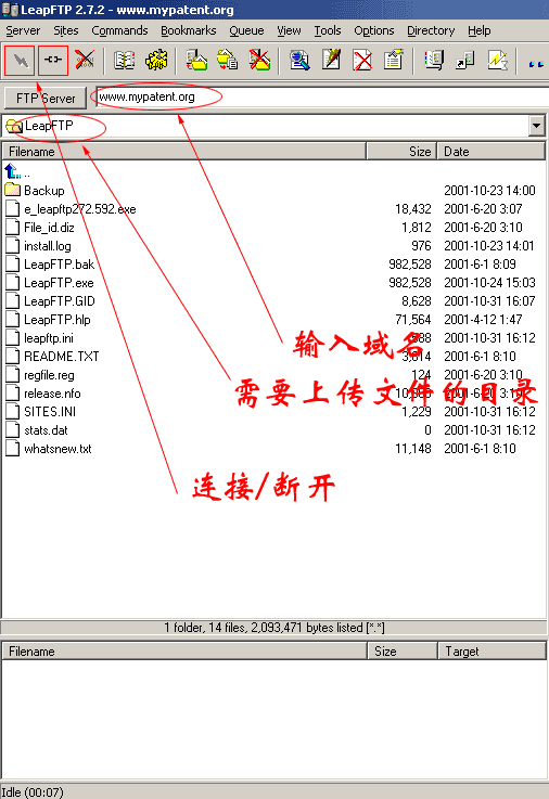 1、左边是客户端,显示的是本地计算机上要上传的文件。(图1)