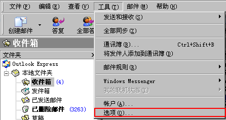 打开Outlook,选择菜单 工具->选项